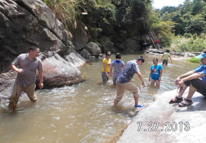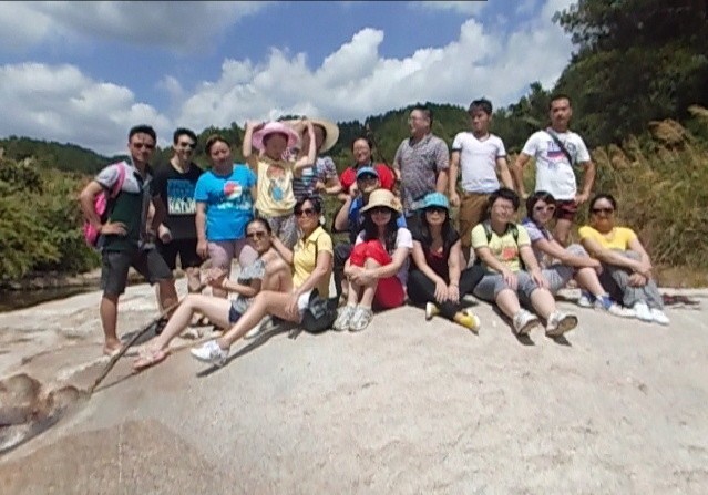 清澈的泉水,清秀的翠山,清新的空氣,如棲世外桃源。期間,溯溪的過程同事之間各種令人捧腹大笑的摔跤才是最大的亮點(diǎn)和樂趣。正午,我們?cè)谏巾斢淇斓鼐鄄?,飯后又參觀了山頂最大的無名瀑布便鎩羽而歸了。