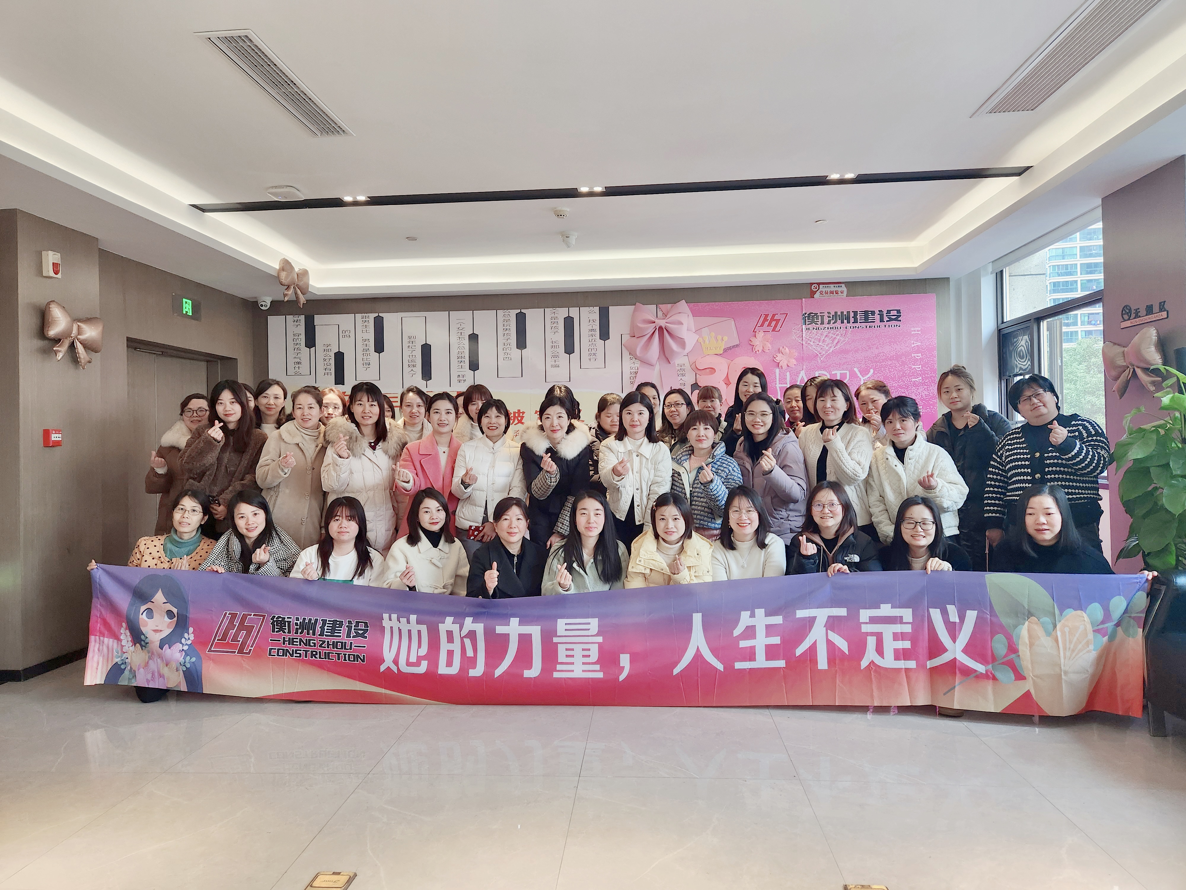 春風(fēng)有信,花開有期。在暖意漸濃的三月,我們迎來(lái)第115個(gè)“三八”國(guó)際婦女節(jié)。為豐富女職工的文化生活,加強(qiáng)彼此間的溝通與交流,展現(xiàn)公司女職工積極向上的精神面貌,3月7日下午,湖南省衡洲建設(shè)有限公司(以下簡(jiǎn)稱“衡洲建設(shè)”)開展了形式多樣的三八婦女節(jié)主題活動(dòng),以別樣的方式致敬“她”力量!此次活動(dòng)吸引了公司70余名女性職工的熱情參與,大家歡聚一堂,共同享受節(jié)日里那份獨(dú)特的溫馨。精心籌備的趣味游戲環(huán)節(jié)迅速點(diǎn)燃了現(xiàn)場(chǎng)氛圍。從“原地踏步走”的緊張激烈,到“翻杯挑戰(zhàn)”中的默契比拼,再到“蘿卜蹲”游戲中的爆笑對(duì)決,每一位參與者都全情投入,盡情享受游戲帶來(lái)的輕松愉悅。在歡聲笑語(yǔ)中,大家不僅釋放了工作的壓力,更在互動(dòng)中拉近了心與心的距離,深化了友誼,團(tuán)隊(duì)的力量也在無(wú)形中凝聚得更加緊密。